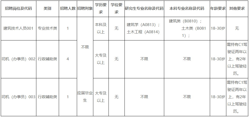 3.崗位為司機(辦事員),崗位代碼003,招聘對象為普通高等院校2022年大學專科畢業(yè)應屆畢業(yè)生。